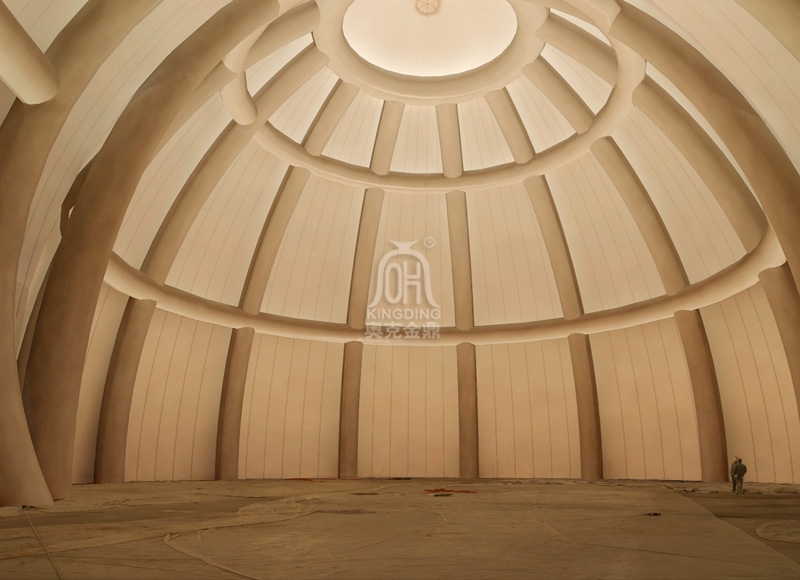 4、 雕塑感:張拉膜結(jié)構(gòu)的獨(dú)特曲面外形使其具有強(qiáng)烈的雕塑感。膜面通過(guò)張力達(dá)到自平衡。負(fù)高斯膜面高低起伏具有的平衡感使體型較大的結(jié)構(gòu)看上去像擺脫了重力的束縛般輕盈地飄浮于天地之間。無(wú)論室內(nèi)還是室外這種雕塑般的質(zhì)感都令人激動(dòng)。