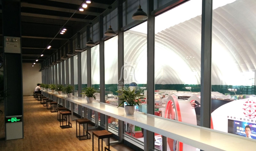 揚(yáng)州廣陵新城展覽館,長110米,寬65米,占地面積7150平方米,充氣膜結(jié)構(gòu)展覽館,建筑外觀別具一格通體雪白,簡潔新穎,現(xiàn)已全面完工。