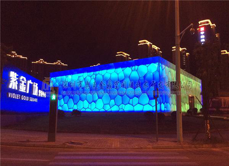 顏色和印刷:ETFE膜材通常為無色透明狀,也可以做成白色、藍色或其他顏色。根據(jù)需要可以在無色透明或其他顏色膜材上印刷各種圖案。